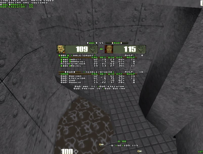 Q2dm7 BoD: Executor, Myq, ABC, Pretor BBC: Nightstalker, Adi, Bezel, Hardiel Q2dm5 BoD: Executor, Bocian, Myq, Rookie BBC: Nightstalker, Adi, Bezel, Hardiel Q2dm3 BoD: Executor, Son!c, ABC, Pretor BBC: Nightstalker, Adi, Bezel, Hardiel